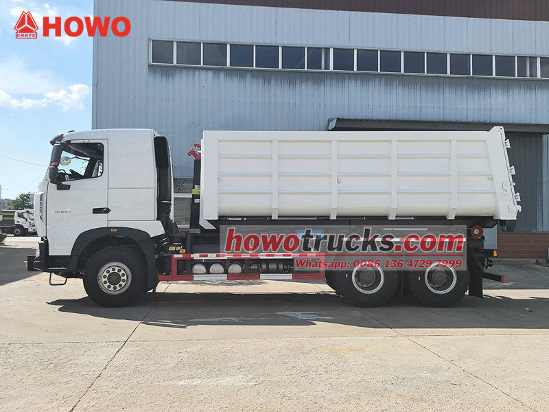 ●HOWO илгичтүү таштанды ташуучу унаасы шассиден, гидравликалык системадан, илгичтүү рычаг механизминен жана алынуучу таштанды челектен турат. Гидравликалык система илгичтүү рычагын сунуу жана артка тартуу үчүн цилиндрди айдайт, бул таштанды челекти автоматтык түрдө жүктөө, түшүрүү жана төгүү мүмкүнчүлүгүн берет.
