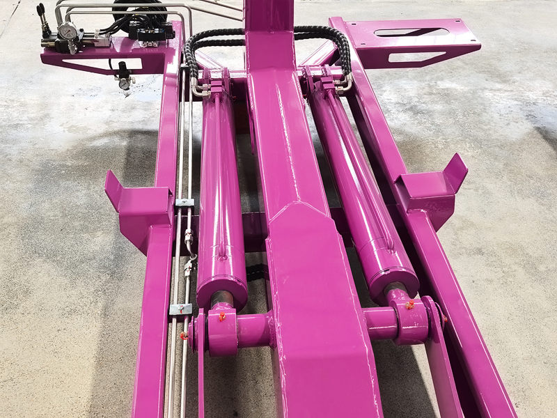 ♦Гидравликалык система таштанды челекти кармоо, көтөрүү жана түшүрүү үчүн илгичтин рычагын кыймылдатат, ал эми кулпулоо механизми челекти тез бекитет.