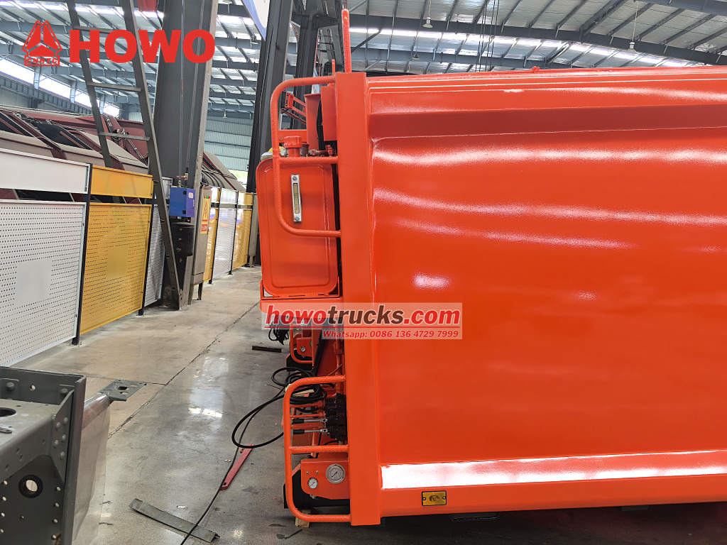 HOWO таштанды ташуучу унаанын кузов комплекти кысуу операциялары учурунда 12 тоннага чейин вертикалдык басымга туруштук бере алат, бул анын иштөө мөөнөтүн бир топ узартат. Жүктөөчү түзүлүш көп баскычтуу гидравликалык байланыш конструкциясын колдонот. Сыргыч жана кыргыч түзүлүшү Fujian Shanyou гидравликалык цилиндри менен башкарылат, үзгүлтүксүз кысуу үчүн бир Wanye насостук системасын колдонот, бул бир циклдин 30 секунддан аз убакытты камсыз кылат. Гидравликалык система инновациялык түрдө кош насостук кошумча конфигурацияны колдонот: негизги насос жүк ташуучу унаанын көтөрүүсүн жана арткы эшигин ачып-жабууну башкарат, ал эми экинчи насос кысуу түрткүчү үчүн атайын кыймылды камсыз кылат. Эмгектин мындай бөлүштүрүлүшү 8-10 куб метр таштандынын тез кысылышын камсыз кылат, ошондой эле эки тараптуу тең салмактоочу клапандын аркасында көтөрүү учурунда күтүлбөгөн тайгаланып кетүүнүн алдын алат.