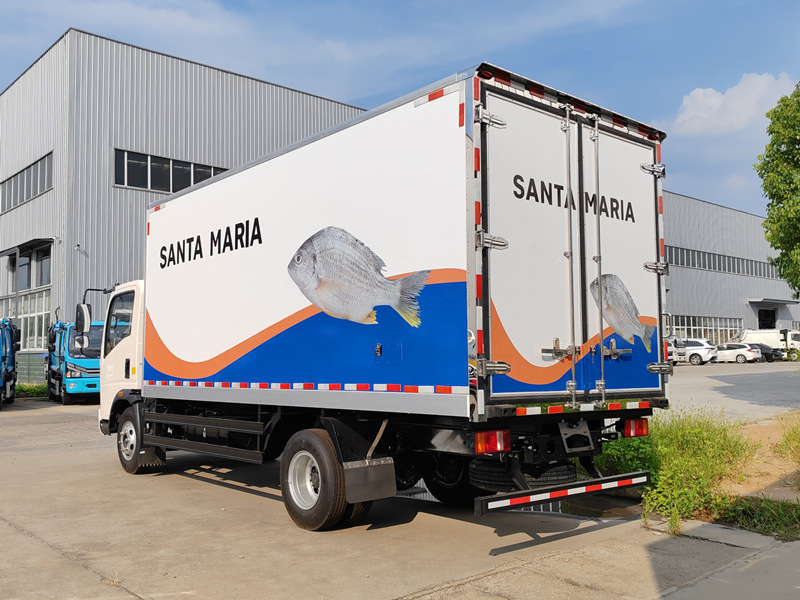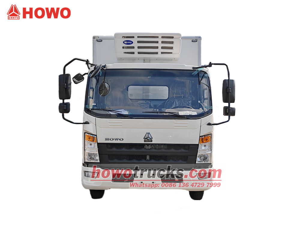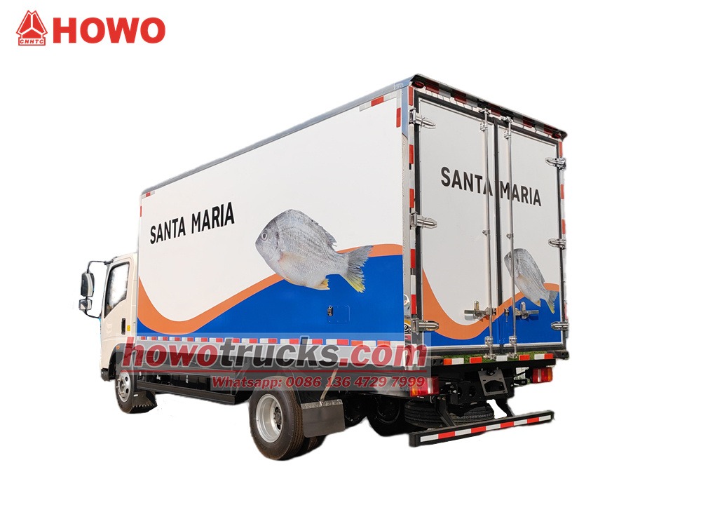 HOWO 4x2 муздаткыч жүк ташуучу унаасы HOWO жеңил жүк ташуучу унаасынын шассисин колдонот, дөңгөлөк базасы 3360 мм. Cummins ISF3.8s4R154 154 аттын күчүнө ээ кыймылдаткычы жана WLY6TS55 6 ылдамдыктагы редуктору менен жабдылган. Жогорку муздаткыч кутучасынын өлчөмү 4200×2200×2050 мм жана айнек буласынан, FRP + PU көбүгүнөн + FRP 105 мм панелдүү материалдан жасалган, толугу менен жабык сэндвич панели, оң жактагы эшиги, толук өлчөмдөгү кош арткы эшиги, тайгаланбаган жана эскирүүгө туруктуу полу бар жана HX-580 муздаткыч блогун колдонот. Бул куту 5 тонна жүктү көтөрө алат жана негизинен деңиз азыктарын муздак чынжыр менен ташуу үчүн колдонулат.