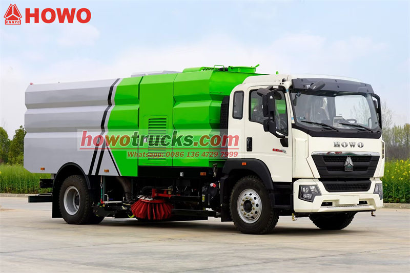 Howo 4x2 шыпыргыч тазалоочу жүк ташуучу унаасы – бул күчтүү шыпыруу жана натыйжалуу иштөө жөндөмүнө ээ, шаардык көчөлөрдү, өнөр жай парктарын жана административдик имараттарды тазалоого ылайыктуу машина. Анын 6CBM чаң чогултуучу багы жана 4CBM суу багы, 4 мм дат баспас болоттон жасалган шыпыргыч корпусу менен айкалышып, бышык жана натыйжалуу тазалоону камсыз кылат. 300 аттын күчүнө ээ дизелдик кыймылдаткыч жана HW 10 ылдамдыктагы трансмиссия менен жабдылган ал күчтүү жана жылмакай жүрүүнү камсыз кылат.
