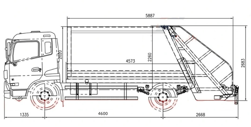 ♦Унаа таштандыларды тазалоочу жайга келгенде, гидравликалык система өз ишин тескери буруп, жүк ташуучу унаанын погребинен кысылган калдыктарды чыгаруу үчүн түрткүчтү түртөт.