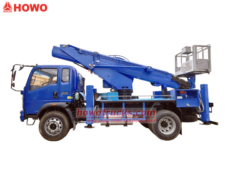 As a professional engineering vehicle, the Howo 18-meter articulated platform aerial truck is designed to combine reliable technical performance with comprehensive safety protection, making it suitable for various high-altitude operation scenarios. In terms of basic chassis and power configuration, the truck adopts the Howo all-wheel drive chassis, which lays a solid foundation for its flexible operation in complex road conditions. Equipped with an ISF3.8S3154 engine, it can output a maximum power of 154 horsepower.