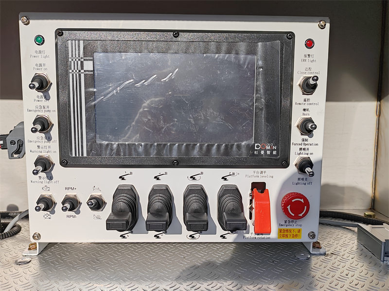 4. Жабдуулардын параметрлери: Жогорку сапаттагы гидравликалык бөлүк, бир деңгээлдүү телескопиялык көтөргүч рычаг, эки даана 12 тонналык гидравликалык лебедка, шаймандар корпусу, эки аутригер, кол менен башкаруу түзүлүшү, эки прожектор, бир сигнализация чырагы жана негизги аксессуарлар