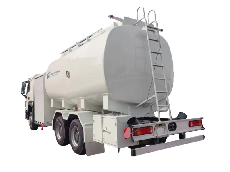 16000×2HOWO 20000L учактарына май куюучу жүк ташуучу унаасы - HOWO 6×4 оор жүк ташуучу шассиге курулган атайын авиациялык жер үстүндөгү колдоочу унаа. Ал 400 аттын күчүнө ээ Weichai кыймылдаткычы жана 10 ылдамдыктагы трансмиссия менен жабдылган, бул туруктуу жүк көтөрүү жөндөмдүүлүгүн жана маневр жасоо мүмкүнчүлүгүн камсыз кылат. Үстүнкү кузову 20 куб метрлик алюминий эритмесинен жасалган күйүүчү май багынан турат, ал 1200-1500 л/мин өз алдынча сордуруучу борбордон четтөөчү насос, 5 микрондук чыпкалоо жана бөлүү системасы жана кош режимдеги май куюу системасы (DN63 гидравликалык шланг катушкасы менен басым менен май куюу жана DN38 күйүүчү май соплосу менен гравитациялык май куюу) менен жабдылган, бул авиациялык күйүүчү майды натыйжалуу жеткирүүнү камсыз кылат. Унаада Deadman башкаруу системасы, басымды башкаруу клапандары жана магниттик башкарылуучу май куюучу программалоочу бар, бул авиациялык басым менен турукташтырылган муфталар, күйүүчү май буусун калыбына келтирүү интерфейстери жана жарылууга туруктуу электр жабдуулары аркылуу толук процесстик коопсуздукту башкарууну камсыз кылат.