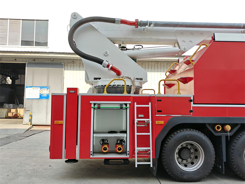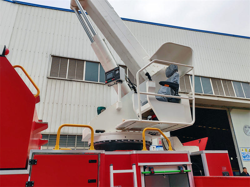 Оорулуучу бөлүк чексиз 360 градустук оорулуучу бурчка жетише алган борбордук оорулуучу муун менен жабдылган. HЖогорку жете турган узартуучу мунаралуу owo өрт өчүрүүчү унаасы чоң агымдуу өрт насосу жана ок атуучу замбирек менен жабдылган. Суу резервуары жана суу жолу жогорку сапаттагы дат баспас болоттон жана жогорку бекемдиктеги алюминий эритмесинен жасалган түтүктөрдөн жасалган. Гидравликалык система жогорку өндүрүмдүү насосту жана электр-суюктук пропорционалдуу башкаруу режимин колдонот. Электр системасы жетилген жана ишенимдүү контроллер CAN шина байланыш технологиясын жана көп чекиттүү борборлоштурулган иштөөнү колдонот.