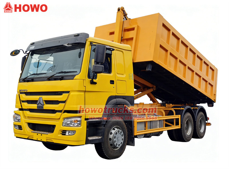 ♦ The Howo garbage hook lift truck has a rated load capacity of 30 tons and a garbage bin volume of up to 20 CBM