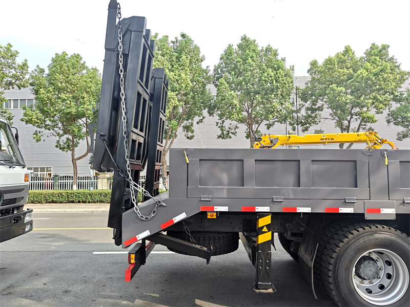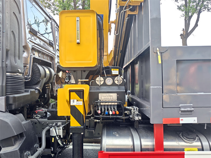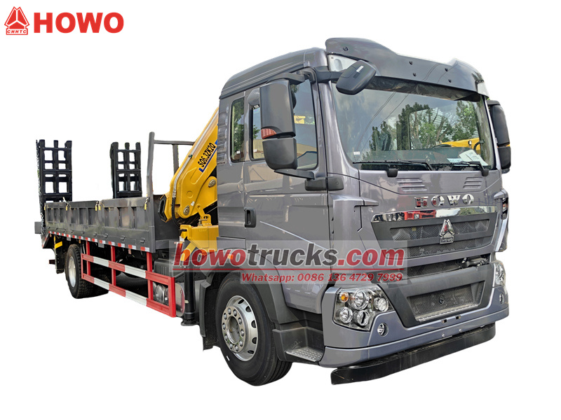 ♦ Howo 4x2 жүк ташуучу унаасы 6 тонналык муунтуу штангалуу кран (10 тонналык момент/8,6 м бийиктик) жана 20 тонналык жалпак жүк ташуучу функция менен жабдылган..