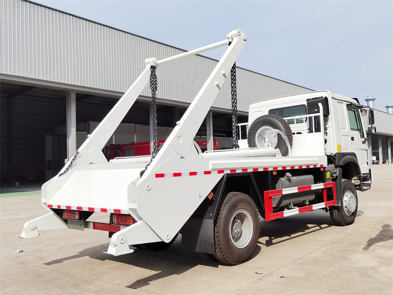 10000HOWO 4×4 таштанды ташуучу унаасы – бул таштанды контейнерлерин механикалаштырылган жүктөө жана түшүрүү үчүн айланма рычаг механизмин иштетүү үчүн гидравликалык системаны колдонгон атайын санитардык унаа. Ал Sinotruk 266 аттын күчүнө ээ кыймылдаткычы менен жабдылган жана HOWO 10 тиштүү трансмиссиясы жана жогорку бекемдиктеги октор менен дал келген HOWO 4×4 толук дөңгөлөктүү шассиге курулган, оор жүктөрдө жана татаал жол шарттарында да күчтүү жүк көтөрүү жөндөмдүүлүгүн жана ишенимдүүлүгүн камсыз кылат. Үстүнкү түзүлүш жогорку бекемдиктеги болоттон жасалган, бул бекем жана бышык иштөөнү камсыз кылат. Негизги гидравликалык айланма рычаг системасы жылмакай жана күчтүү иштейт, көтөрүү кубаттуулугу 6 тоннадан ашат. Ар бир иштөө цикли бир мүнөттөн аз убакытты алат, бул жогорку натыйжалуулукту жана убакытты үнөмдөөнү камсыз кылат.