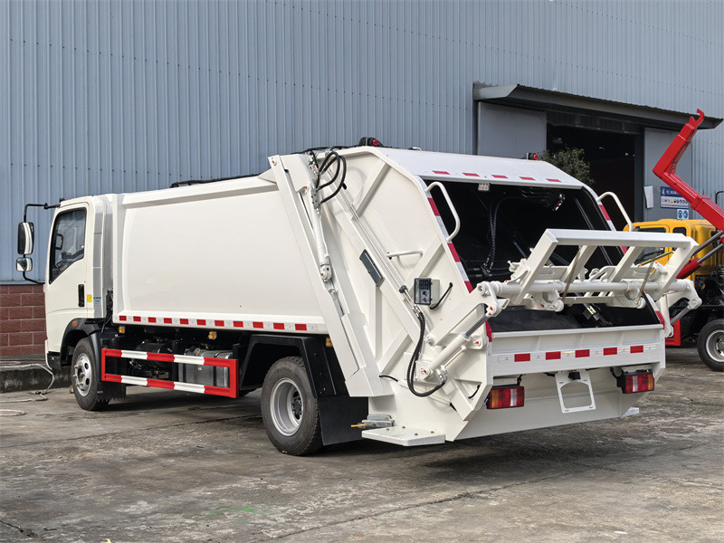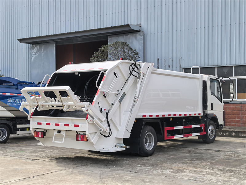 Howo 4x2 8 куб метрлик таштанды сыгуучу жүк ташуучу унаасы 3800 мм дөңгөлөк базасы бар Sinotruk Howo жеңил жүк ташуучу унаасынын шассисин колдонот. Ал Cummins ISF3.8s3141 кыймылдаткычы жана WLY6TS55 редуктору менен жабдылган. Үстүнкү таштанды контейнери дого сымал конструкцияга ээ, капталдары 4 мм калыңдыкта жана түбү 5 мм калыңдыкта көмүртек болоттон жасалган жана коррозияга жана дат басууга каршы иштетилген. Анын арткы жагына орнотулган эңкейүүчү урнасы бар жана стандарттуу 110L жана 240L таштанды урналары менен жабдылышы мүмкүн. CAN-BUS башкаруу системасы кабинадагы электрдик башкаруу кутучасы, айдоочу тарабындагы гидравликалык башкаруу клапаны, арткы эшиктин сол тарабындагы электрдик башкаруу кутучасы жана оң тарабындагы кол менен башкаруу рычагы аркылуу таштандыларды чогултууга, кысууга жана түшүрүүгө мүмкүндүк берет.