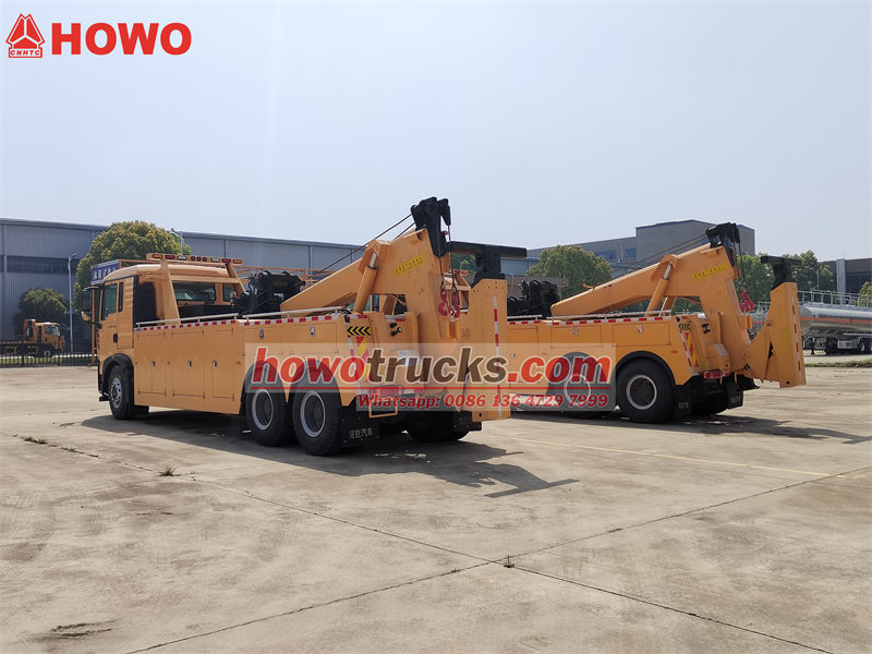 Howo 6x4 сүйрөгүч жүк ташуучу унаасы бекем гидравликалык оодаргыч системасы менен жабдылган (ар бир оодаргычта 12,5 тонна жүк көтөрүүгө ылайыкталган), бул кеңири колдоо аралыгын камсыз кылат жана оор жүктөрдү куткаруу операцияларында коопсуздукту жана туруктуулукту камсыз кылат. Сары түстөгү люкс бир катарлуу жана жарым уктоочу кабина (башка түстөр бар), 400 литрлик чоң сыйымдуулуктагы күйүүчү май багы, 24V электр системасы, толук эскертүүчү жарыктандыруу (эскертүүчү чырактар, стробоскопиялык чырактар) жана шаймандар кутучасы жана башка аксессуарлар аны комплекстүү функциялары жана күчтүү иштеши бар кеңири масштабдуу кесипкөй сүйрөө жана куткаруу жабдууларына айлантат.