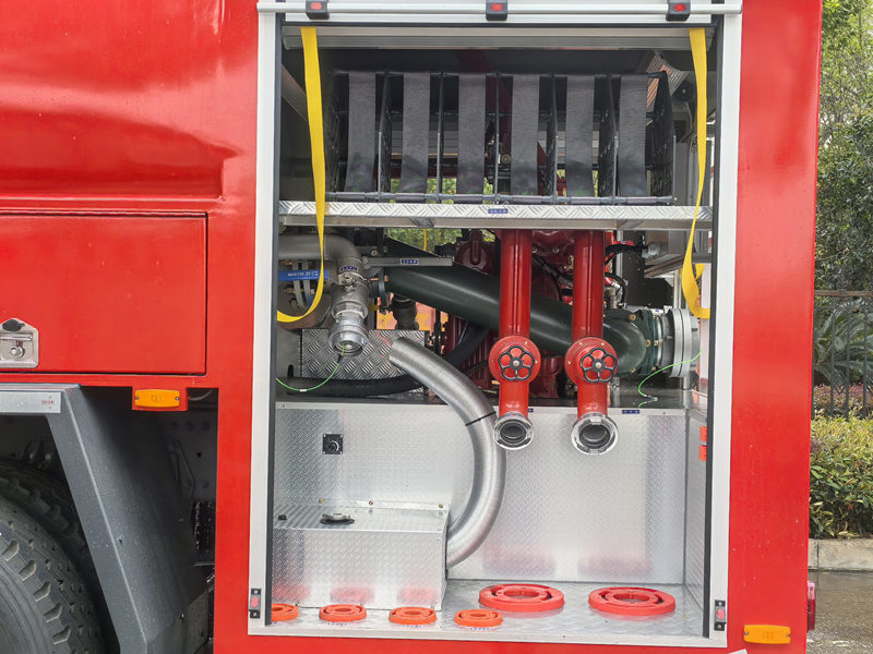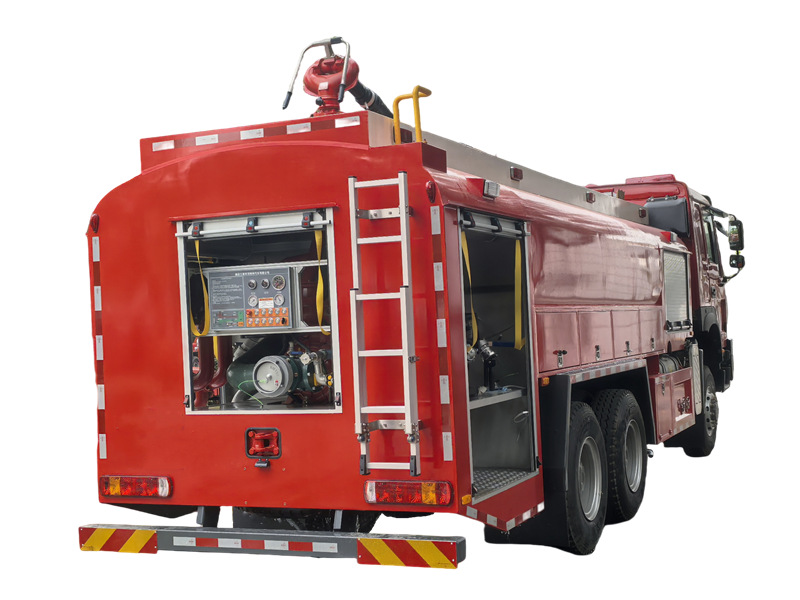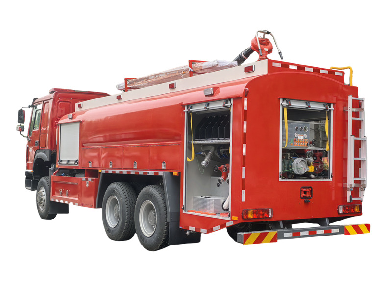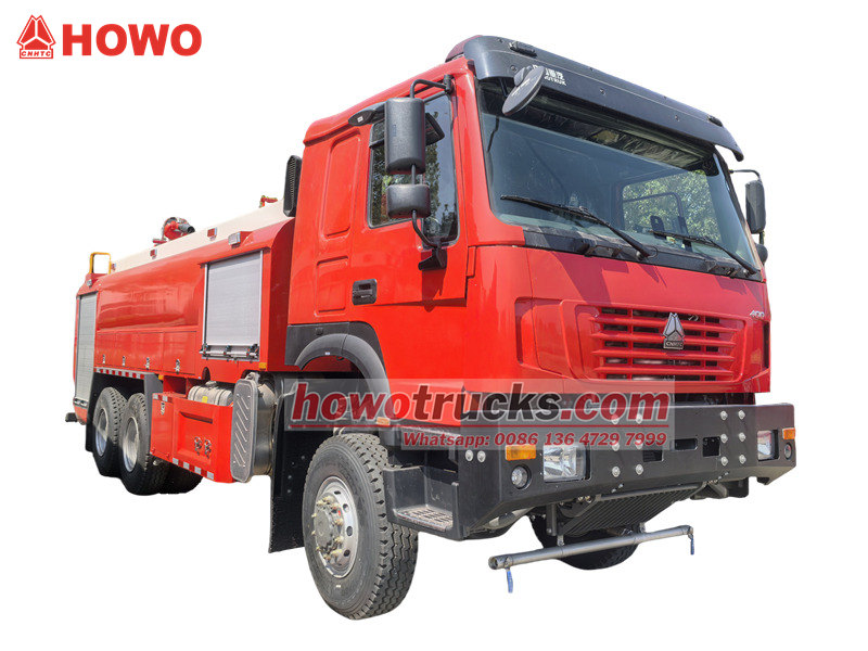 HOWO 6×6 өрт өчүрүүчү унаасында 8000 литр суу багы жана 2000 литр дат баспас болоттон жасалган көбүктүү бак бар. Ал CB10/60 кадимки басымдагы өрт өчүрүүчү насосу жана 70 метрден ашык аралыкка ээ PL48 өрт өчүрүүчү замбиреги менен жабдылган, бул ага кыймылдап жатканда өрттү өчүрүүгө мүмкүндүк берет. Насос бөлмөсүнүн жайгашуусу акылга сыярлык. Жабдуулар бөлүмү алюминий эритмесинен жасалган жылдырма эшиктерди жана модулдук бекитилген конструкцияны колдонот. Бул HOWO жолтандабас өрт өчүрүүчү жүк ташуучу унаасы жогорку бекемдиктеги конструкцияны, натыйжалуу өрт өчүрүү системасын жана колдонуучуга ыңгайлуу иштөө дизайнын бириктирет. Ал ишенимдүүлүк, эксплуатациялык натыйжалуулук жана айлана-чөйрөгө ыңгайлашуу жагынан эң сонун көрсөткүчтөргө ээ.