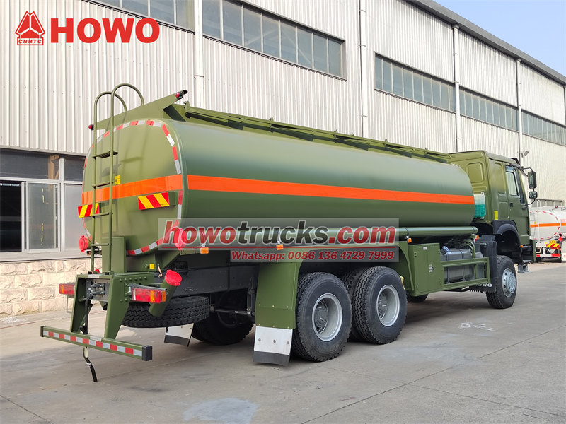HOWO 6×6 күйүүчү май куюучу унаасы SINOTRUK HOWO 6×6 толук жетектеген шассисинин негизинде иштелип чыккан, күйүүчү май куюучу унаанын сыйымдуулугу 18000 литрге чейин, жогорку сапаттагы көмүртек болоттон жасалган жана иштөө мөөнөтүн узартуу үчүн ички коррозияга каршы иштетилген. Бак эки бөлүккө бөлүнгөн, бул ар кандай мунай продуктуларын сактоого жана ташууга мүмкүндүк берет. Жолсуз жерлерде жүрүүдөгү эң сонун көрсөткүчтөрү менен унаа баткак жана шагыл сыяктуу катаал жол шарттарына ыңгайлаша алат.