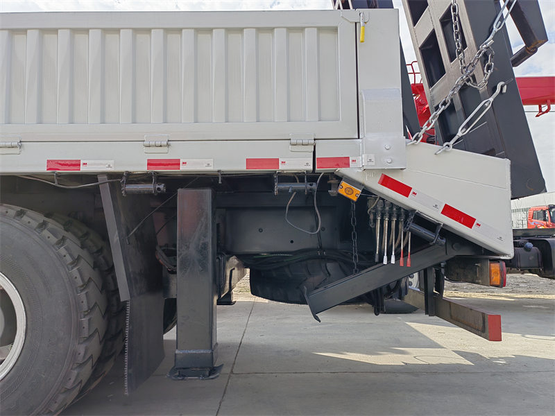 ♦ Howo 8x4 жүк ташуучу унаасы 16 тонналык муунтуу штангалуу кран (10 тонналык момент/8,6 м бийиктик) жана 20 тонналык жалпак жүк ташуучу функция менен жабдылган..