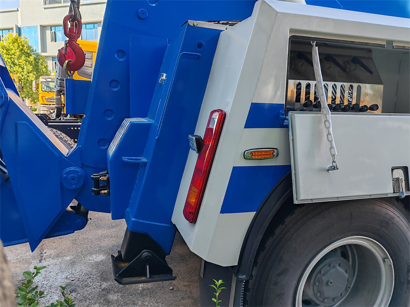 2. Көтөрүү функциясы: Жебе оор жүк ташуучу унаалар үчүн маанилүү жабдык болуп саналат. Ал, адатта, бузулган унааны бир учунан (же капталынан) көтөрүү же бүтүндөй унааны көтөрүү, туура көтөрүү үчүн кайра жайгаштыруу үчүн көтөргүч жебе менен жабдылган. Андан тышкары, оор жүк ташуучу унаалар жебенин узартылышын жана көтөрүлүшүн колдонуп, жолдун жээгиндеги же жакын жердеги унааларды жолго кайра тартып, тик абалга келтире алышат.