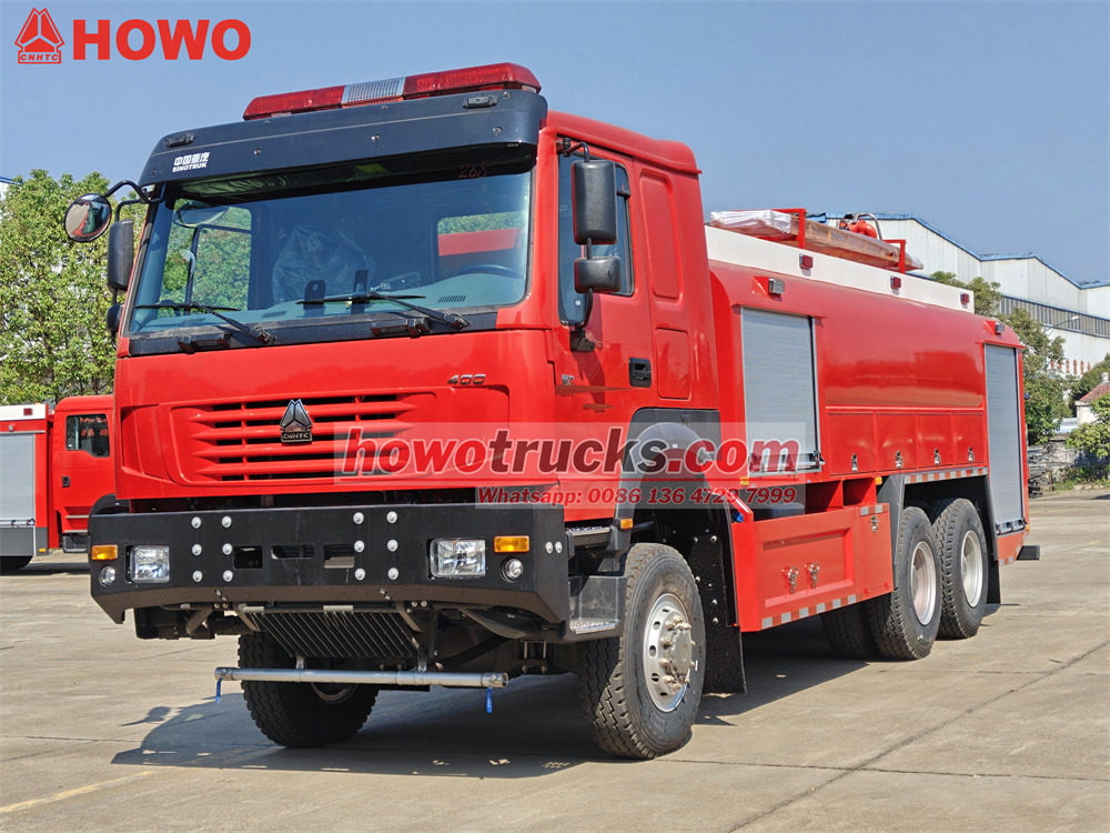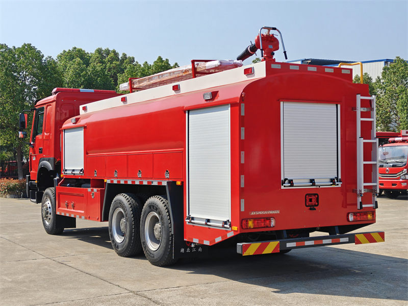 The Howo суу менен жүрүүчү өрт өчүрүүчү жүк ташуучу унаасы 6x6 жетектөөчү формасы бар Sinotruk оор жүк ташуучу шассисин колдонот. Ал ... менен жабдылганWP12S400 E201 400 аттын күчүнө ээ кыймылдаткыч жана 12 алдыга жана 2 артка берүүчү тиштүү механикалык трансмиссиясы бар. Howo 6x6 өрт өчүрүүчү унаасынын бак сыйымдуулугу 8000 литр суу жана 1500 литр көбүк жана коррозияга каршы касиетке ээ PP композиттик материалынан жасалган. Чатырына 45 л/с агым ылдамдыгы жана 55 метрден ашык диапазону бар өрт монитору орнотулган.