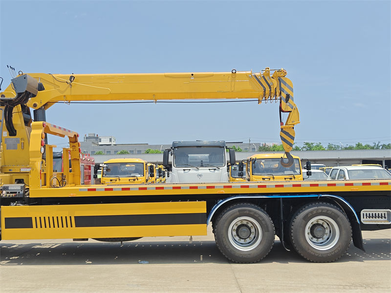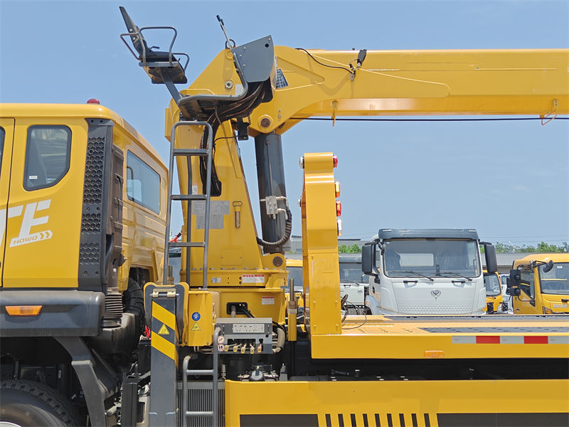 Бул Howo платформалуу 8T крандуу сүйрөгүч жүк ташуучу унаасы көп функциялуу жана мыкты иштелип чыккан атайын жүк ташуучу унаа болуп саналат. Ал кытайлык Yuchai Engine брендинин дизелдик кыймылдаткычы менен жабдылган, кубаттуулугу 260 аттын күчү менен, ар кандай жумуш муктаждыктарын канааттандыра алат. Жаңы M9 люкс кабинасы үч адамды батырат жана айдоочулар менен операторлор үчүн ыңгайлуу айдоо чөйрөсүн камсыз кылган кондиционер менен жабдылган. Кран - бул максималдуу көтөрүү кубаттуулугу 8000 кг, толук айлануу 360° жана максималдуу көтөрүү бийиктиги 16,5 м болгон телескопиялык жебе.