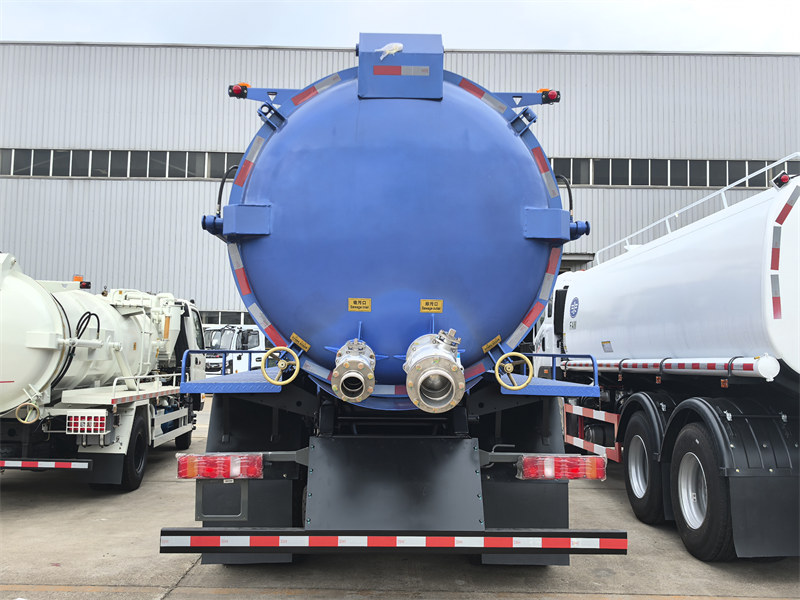 Алдыңкы жагында белгилүү бренддин гидравликалык цилиндри менен жабдылган вакуумдук цистерна комплекти бар, ал күчтүү жана агынды сууларды агызуу үчүн цистернанын корпусун көтөрөт.