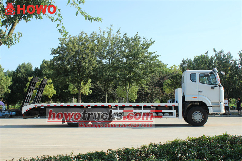 18000(2 axles)The HOWO NX 20 тонналык өзү жүктөгүч жүк ташуучу унаа оор техниканы ташуу үчүн иштелип чыккан атайын унаа. Адистештирилген үстүнкү түзүлүш жана гидравликалык башкаруу системасы менен жабдылган, ал тез жүктөө жана түшүрүү, ошондой эле натыйжалуу ташууну камсыз кылат. Weichai 400 аттын күчүндөгү кыймылдаткычы жана Sinotruk 10 ылдамдыктагы трансмиссиясы менен иштеген ал күчтүү жана ишенимдүү кубаттуулукка ээ. Анын үстүнкү түзүлүшү 7,5 метр узундуктагы, 8 мм калыңдыктагы бекем болот плитадан турат, бул өзгөчө жүк көтөрүү жөндөмдүүлүгүн камсыз кылат. Негизги өзгөчөлүктөрүнө 45 метрлик, 20 тонналык лебедка, алдыңкы гидравликалык аутриггерлер жана арткы жагындагы 2,2 метрлик механикалык пружина пандусу кирет. Арткы гидравликалык аутриггерлер унаанын арткы тарабынан борборлоштурулган түрдө башкарылат, бул жогорку эксплуатациялык натыйжалуулукту камсыз кылат.