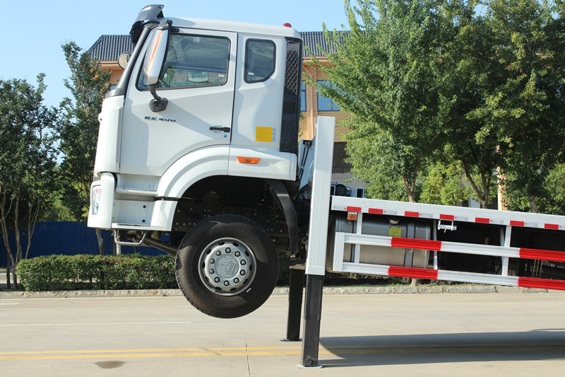◇Гидравликалык оодаргычтар: Унаанын алдыңкы бөлүгүндө эки чоң сыйымдуулуктагы гидравликалык аутригер орнотулган. Алар жүктөө жана түшүрүү операциялары учурунда түшүрүлүп, унаанын алдыңкы бөлүгүнүн туруктуу колдоосун камсыз кылат, унаанын алдыңкы бөлүгүнүн кыйшайышына жол бербейт жана жүктөө жана түшүрүү процессинин коопсуз жана жылмакай болушун камсыздайт.