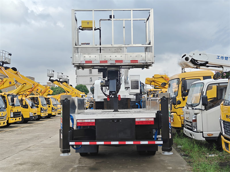 HOWO 22m аба платформасындагы жүк ташуучу унаасы – бул жогорку техникалык көрсөткүчтөрдү жана коопсуздукту камтыган атайын инженердик жүк ташуучу унаа. Howo толук жетектүү шассисинин негизинде курулган жүк ташуучу унаа максималдуу кубаттуулугу 154 аттын күчүнө жана жалпы салмагы 10 000 кг болгон ISF3.8S3154 кыймылдаткычы менен жабдылган, бул ийкемдүү жана күчтүү башкарууну камсыз кылат. Howo жеңил жүк ташуучу аба платформалуу жүк ташуучу унаасынын максималдуу жумушчу бийиктиги 22 метр жана максималдуу иштөө радиусу 12 метр. Ал туруктуулукту камсыз кылуу үчүн гидравликалык статикалык тең салмактуулук системасын колдонот. Эки тараптуу гидравликалык кулпулоо механизми бар уникалдуу H формасындагы гидравликалык аутриггердин дизайны иштөө учурунда туруктуулукту камсыз кылат. Howo жеңил манжеттүү жүк ташуучу унаасы ошондой эле кош кол менен башкарылуучу жана зымсыз алыстан башкаруу системаларына ээ. Платформанын номиналдык жүк көтөрүмдүүлүгү 200 кг, 360° гидравликалык айлануу жана автоматтык түрдө чектен чыгууну башкаруу, авариялык токтотуу жана агып кетүүдөн коргоочу түзүлүш сыяктуу бир нече орнотулган коопсуздук функциялары бар.