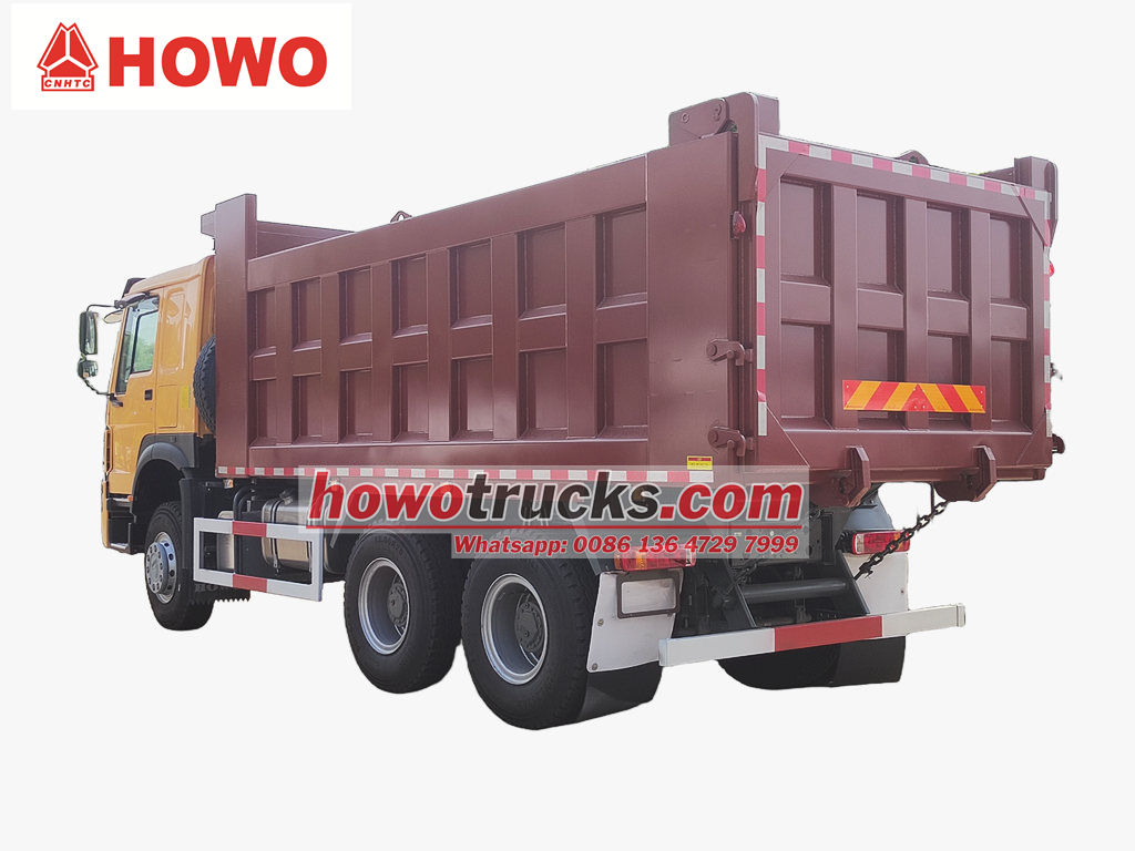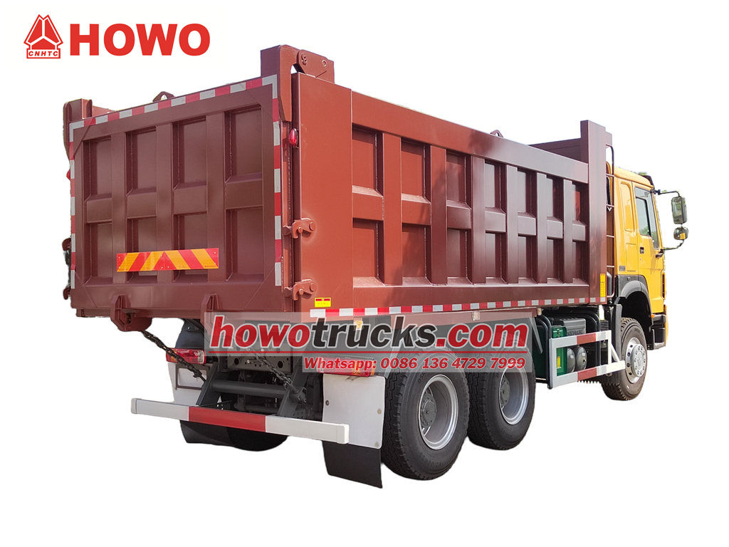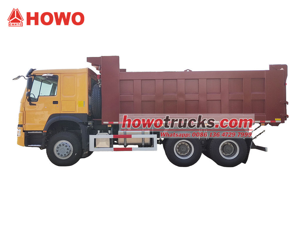 Howo 30 тонналык курулуш самосвалы HOWO 6x4 оң колдуу шассисинин негизинде модификацияланган, дөңгөлөк базасы 4325+1350 мм, WP10.380E22 дизелдик кыймылдаткычы, HW19710 ылдамдыктагы редуктору жана алты капталы жана сегиз түбү бар көмүртек болоттон жасалган самосвал, 5400x2300x1200 мм өлчөмүндө, алдыңкы көтөрүү, туруктуу көтөрүү, таза жана тез түшүрүү, арткы эшиктерди ачууга болот жана унаа айдоочу тарабындагы башкаруу клапаны менен башкарылат, аны башкаруу оңой.