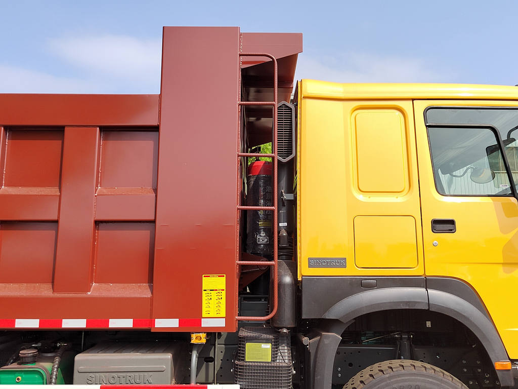 Бул Howo курулуш самосвалы жогорку бекемдиктеги болоттон жасалган тепкич рамасына ээ, ал күчтүү бурулушка туруктуулукту жана эң сонун жүк көтөрүү жөндөмдүүлүгүн камсыз кылат, бул аны дөңсөөлүү курулуш аянтчаларын иштетүүгө ылайыктуу кылат. Анын күчтүү көтөрүү жөндөмдүүлүгү жана жүк ташуучу унаанын 45-60° кыйшайган бурчу тез жана кылдат түшүрүүнү камсыз кылат. Жүк ташуучу унаа 30 тоннага чейин көтөрө алат жана кызмат мөөнөтүн узартуу үчүн кошумча коюуланган болот плиталар же коррозияга каршы каптоолор менен жабдылышы мүмкүн. Арткы эшик ташуу учурунда кокустан ачылып кетүүнүн алдын алуу үчүн автоматтык кулпулоочу конструкцияга ээ, бул коопсуздукту жогорулатат.