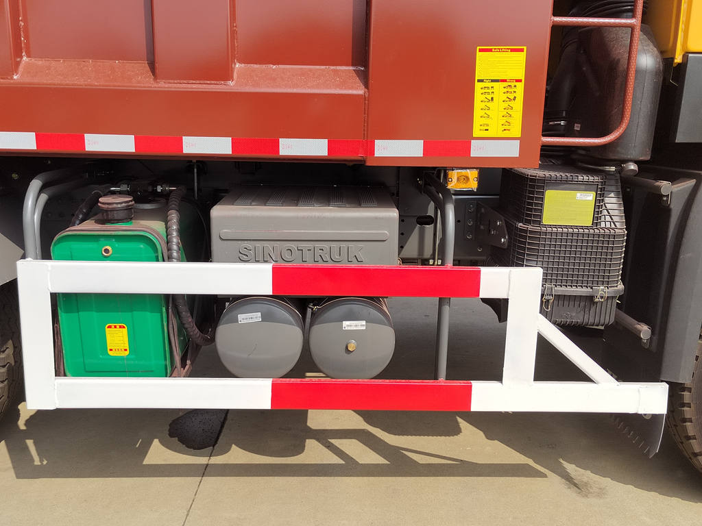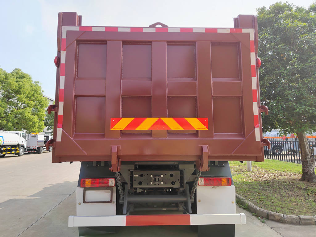 Howo курулуш самосвалы негизинен шассиден, гидравликалык көтөрүү системасынан, жүк кутусунан жана башкаруу системасынан турат. Жүк кутусу алдыңкы жагынан рамага бириктирилген жогорку бекем болот плиталардан ширетилген, ал эми арткы бөлүгүн гидравликалык жол менен ачууга болот же ташуу учурунда бекем жабылышын камсыз кылуу үчүн автоматтык бекитүүчү илгич механизми бар. Гидравликалык система май насосунан, көп баскычтуу гидравликалык цилиндрден, башкаруу клапанынан жана күйүүчү май багын камтыйт. Жүк кутучасын көтөрүү жана түшүрүү кабинанын ичиндеги джойстик аркылуу башкарылат.