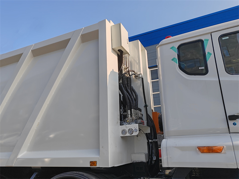 Эки тараптуу компакттуу технология: Эки тараптуу кысуу цилиндринин конструкциясын колдонуу менен, калдыктар жүктөө жана түртүү процесстеринде күчтүү кысылат. Кысуу катышы ≥3:1ди түзөт, бул бир сапардагы ташуу мүмкүнчүлүгүн бир кыйла жогорулатат жана эки тарапка тең баруу жыштыгын азайтат.